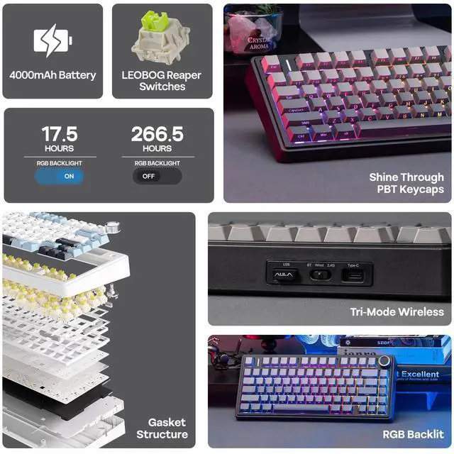 Engage in the dynamic glow of the F75's RGB backlight, presenting a rich spectrum of 16.8 million colors for a personalized typing environment. Tailor lighting patterns to suit your preferences, creating a desktop atmosphere that adapts to your mood.