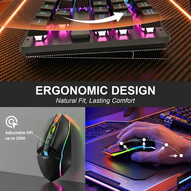 Ergonomic Mouse with Adjustable DPIThe RGB mouse offers smooth tracking and adjustable DPI up to 2000 for precise control. Ideal for fast-paced gaming, productivity tasks, and multimedia navigation.