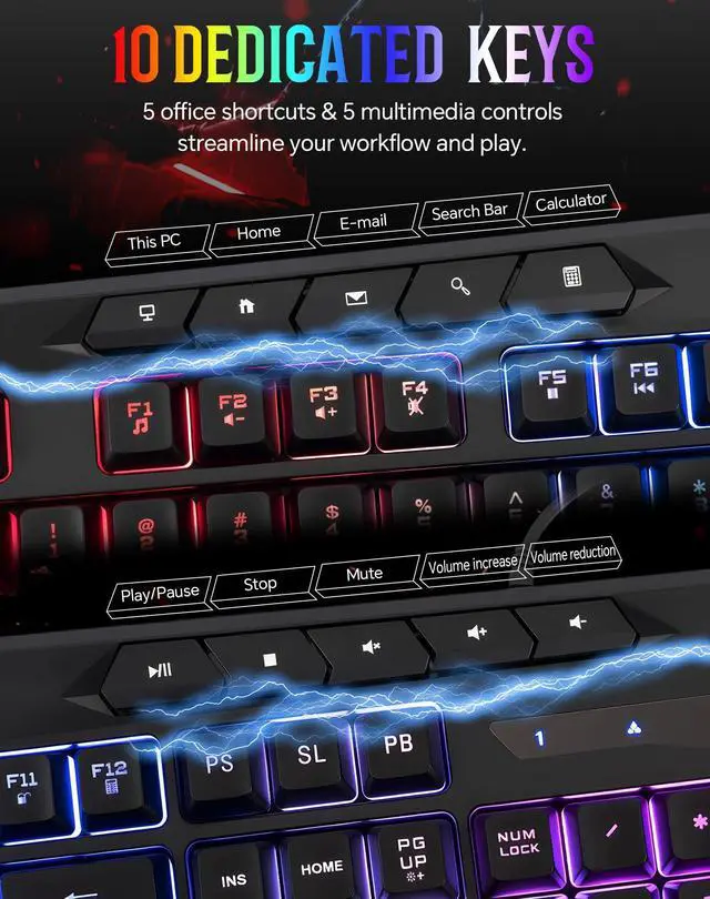 With 5 office keys and 5 Multimedia keys streamline your workflow and enjoy the games.