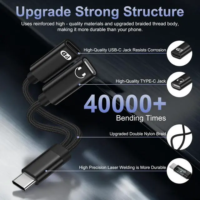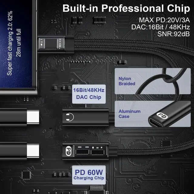 The usb c samsung galaxy s25 headphone adapter and charger adapter support up to 60W PD Charging.