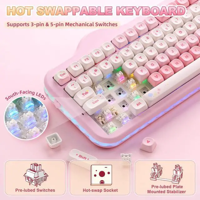 Compared with YUNZII Cute Wireless Mechanical Keyboard