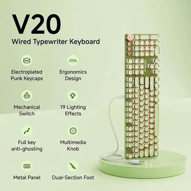 V20 Wired Green Typewriter Keyboard