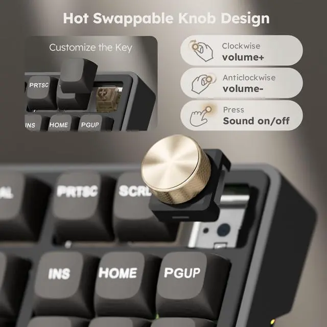 RK R87 Pro wired mechanical keyboard 's knob is hot-swappable and programmable; Not only can it be used as a multifunctional knob to control the volume, but also can customize the knob function(control rgb effect or speed and so on).