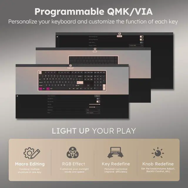 Customize the function of each key, including but not limited to macro editing, key mapping, backlit mode adjusting and key modifing.