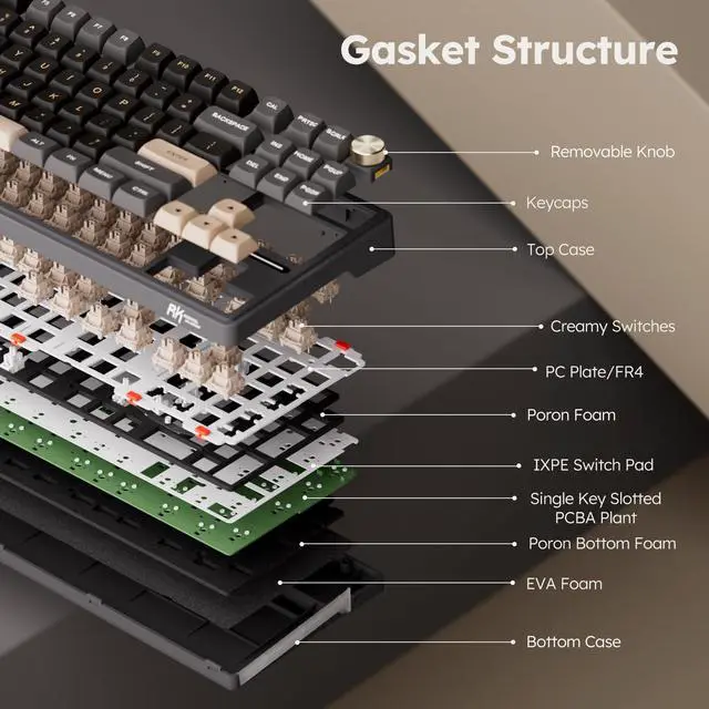 The creamy switch is linear mechanical switch, giving you a creamy and smooth sound feeling.
