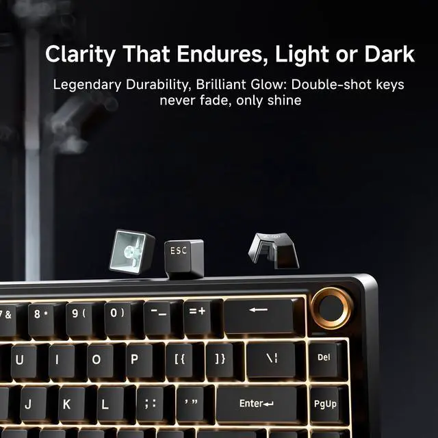 Backlight shines through infused transparent characters, ensuring clear visibility even in dark or no-light environments. The legends are molded into the keycap—not printed or etched—so they never wear off or become unclear. Compatible with 99% of keyboards with cross-style stems.