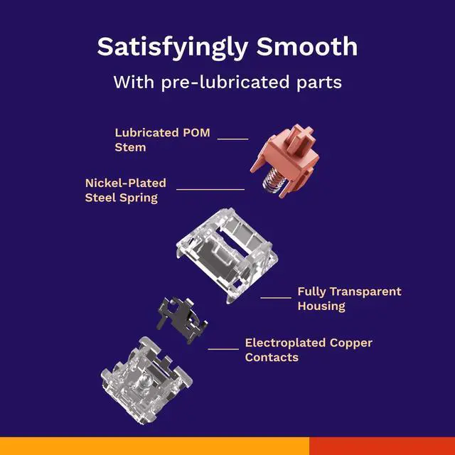 Lubed parts to reduce friction means Glorious Fox linear switches don't just move, they glide.
