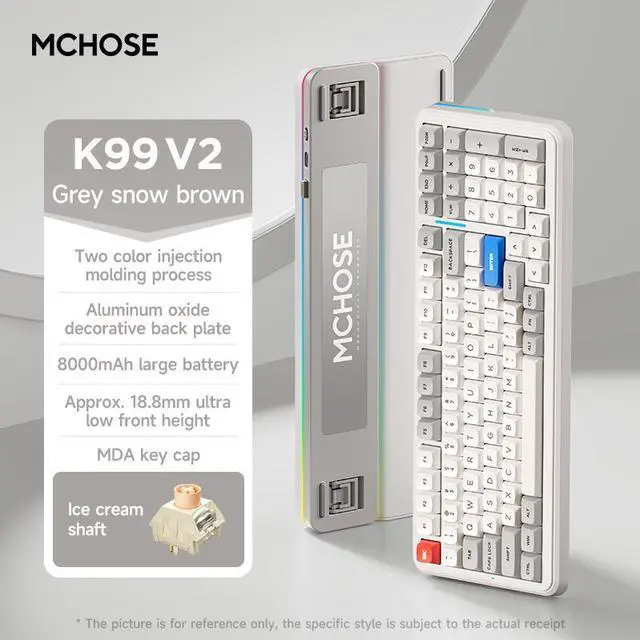 MCHOSE K99 V2 Wireless Gaming Keyboard, Gasket Mechanical Keyboard, BT 5.0 /USB-C/ 2.4GH z Wireless keyboard, with 6-Layer Padding, 8000mAh Battery, Hot Swappable, NKRO for Win/Mac/Linux