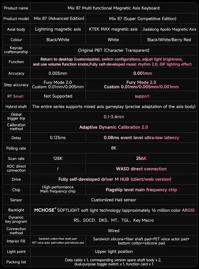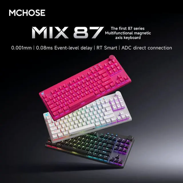 MCHOSE Mix 87 Rapid Trigger Keyboard, Custom Hall Effect Sensor, Gaming Keyboard, Wired RGB Custom Mechanical Keyboards with Magnetic Switch, PBT Keycaps, Magnetic Keyboard