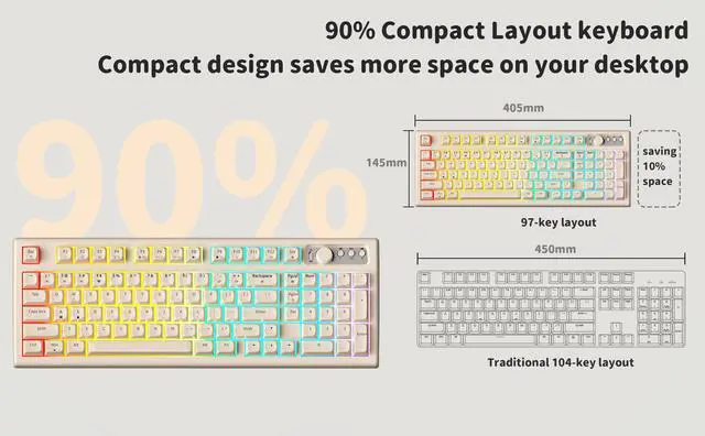 EWEADN V97 Cute Creamy Keyboard, Bluetooth/2.4GHz Gaming Key