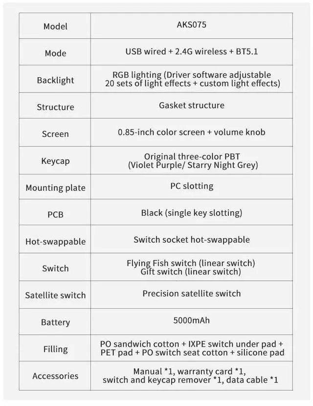 AJAZZ AKS075 Alice three-mode mechanical keyboard game and s