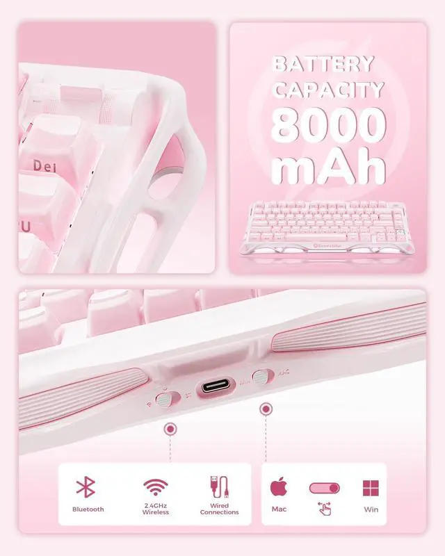 Tri-Mode Connectivity: The Mercury K1 supports wired USB-C, Bluetooth 5.0, and 2.4GHz wireless connections, allowing seamless switching between devices. Its compatibility with both Windows and Mac systems ensures versatility for various setups.