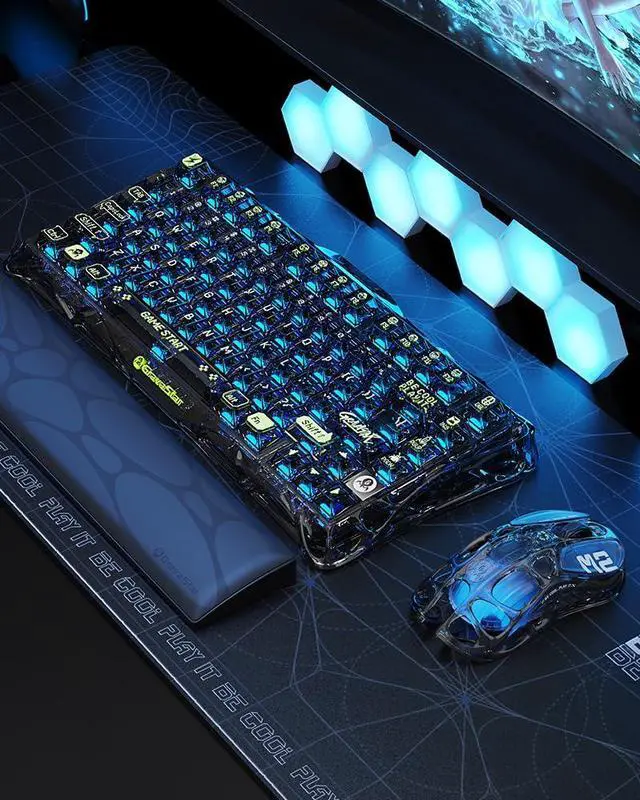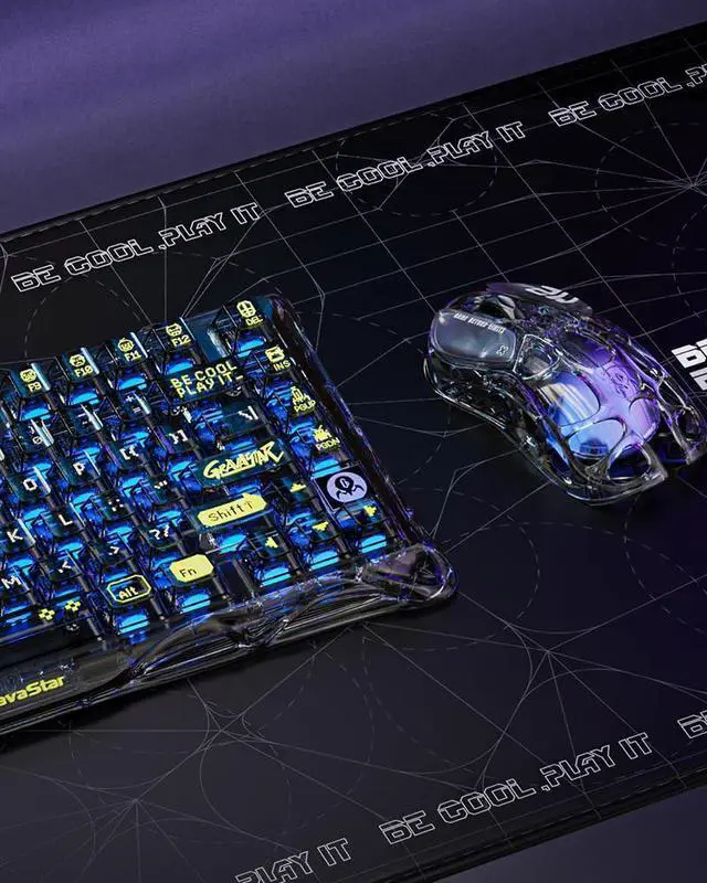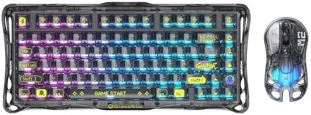 Futuristic Design with Transparent Aesthetics: The GravaStar K1 Lite Mechanical Keyboard showcases a unique hollow and skeletal design, constructed from durable PVC material. Its transparent frame and keycaps enhance the RGB backlighting effects, creating a striking visual appeal. Similarly, the M2 Wireless Gaming Mouse features a hollowed-out design that not only provides a distinctive look but also ensures optimal airflow, keeping your grip cool during intense gaming sessions.