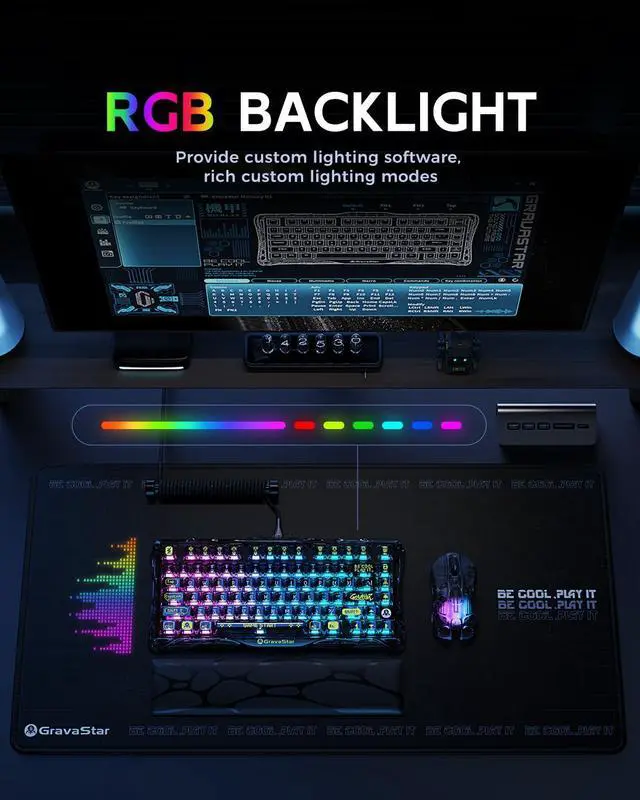 Customizable RGB Lighting Effects: Enhance your gaming setup with the K1 Lite's 13 different RGB lighting modes, providing a customizable and immersive experience. Advanced customization is available through GravaStar Control Center software, allowing complete control over your RGB lighting system effects. The M2 mouse features customizable GLOWSYNC RGB lighting, offering five dynamic light modes and the ability to create your own lighting profiles using intuitive software.