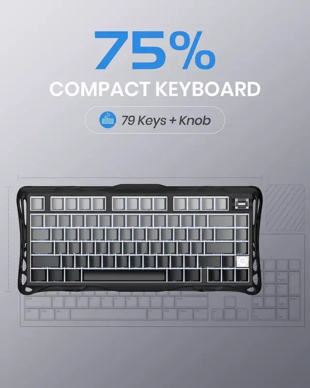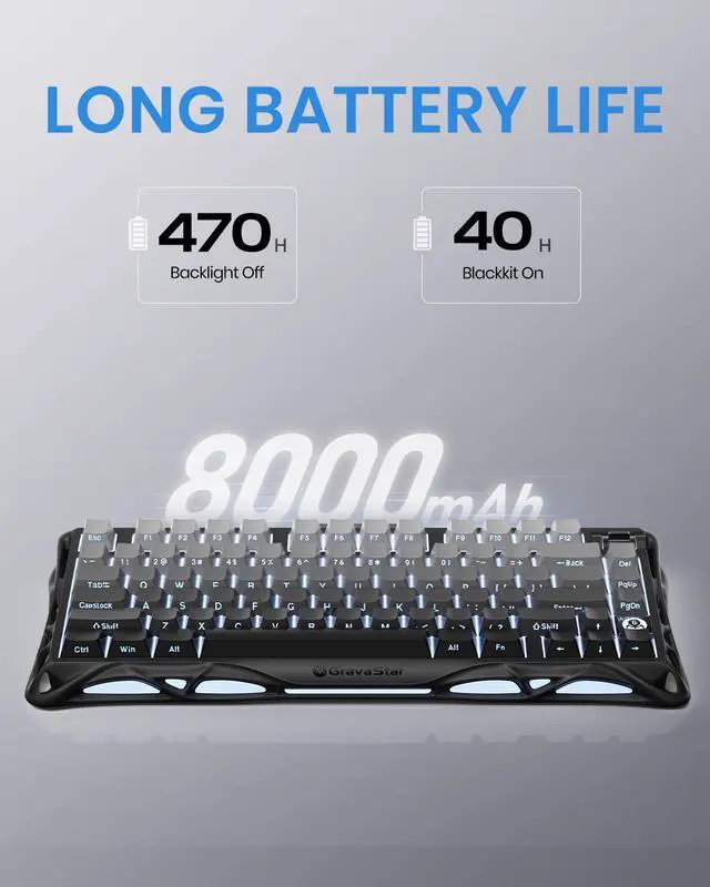 3. The Mercury K1 custome keyboard includes a custom set of GravaStar x Kailh Linear switches that are perfect for gaming and for typing. The lightweight 40 gf actuation and 1.5mm pre-travel are fast enough for split-second reactions, but forgiving enough to prevent accidental key presses. 3.5mm total travel provides a comfortable typing experience that helps prevent hand fatigue, especially when combined with the K1's flexible PC positioning plate.