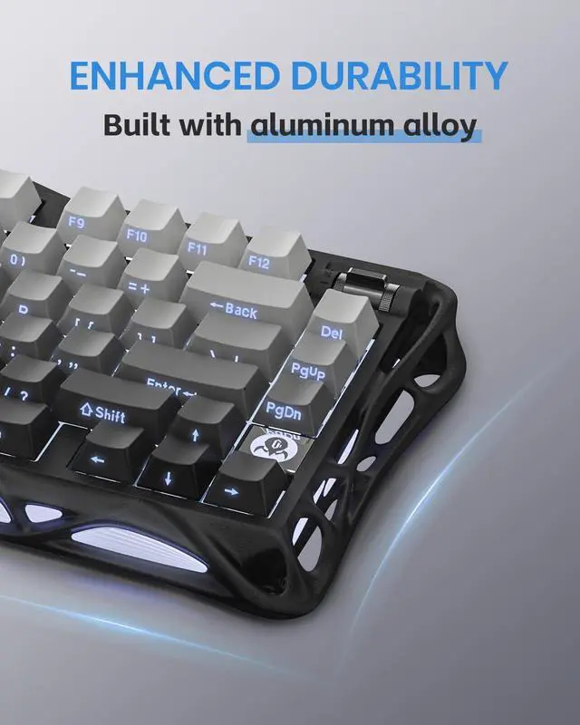 1. The Mercury K1 mechanical keyboard is about balance in all things, weaving strength and lightness into each curve of its aluminum alloy exoskeleton. The flowing metal frame stands strong under every keystroke, providing a symmetrical stability that is perfectly positioned for intense gaming and comfortable typing.