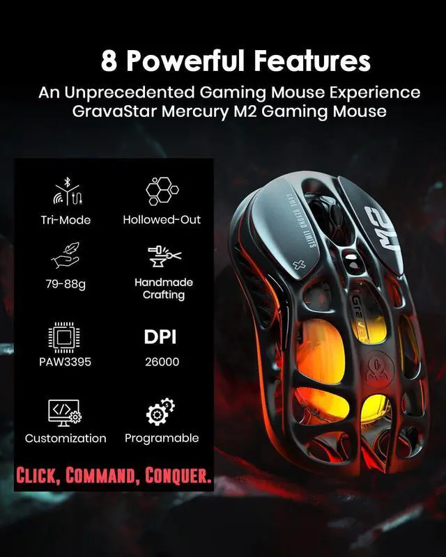 Precision in Play: 1K Hz Polling Rate for Sharp Accuracy -Equipped with a 1K Hz polling rate and 26,000 DPI, the M2 captures every nuance of your movement, translating it into precise, in-game actions. Perfect for both competitive and casual gaming, it ensures your responses are always on point, thanks to the PAW3395.