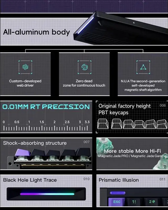 Quick Response:16k Hz full-key scan rate with an 8k Hz USB polling rate, featuring a 0.125 ms delay and "zero" delay function triggers, delivering a professional esports experience.