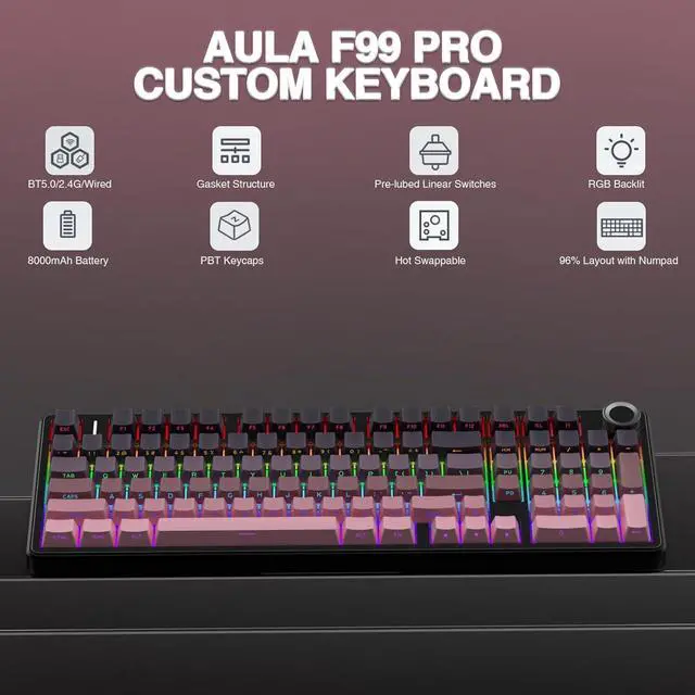 Hot-swappable Custom Keyboard: The switches and keycaps can be freely replaced(keycap/switch puller are included in the package).This customizable keyboard with hot-swap PCB allows users to replace 3 pins/5 pins switches easily without soldering issue. F99 Pro mechanical keyboards equipped with pre-lubed linear switches, bring smooth typing feeling and pleasant typing sound, provide fast response for exciting game