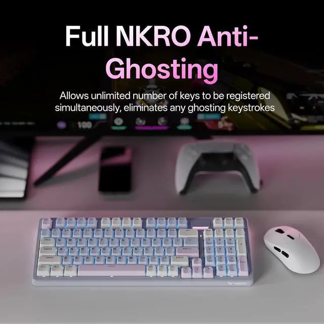 5. Full NKRO Anti-GhostingAllows unlimited number of keys to be registered simultaneously, this full n-key rollover (NKRO) keyboard eliminates any ghosting keystrokes - ensuring accurate input for complex gaming moves and a smoother, more efficient typing experience.