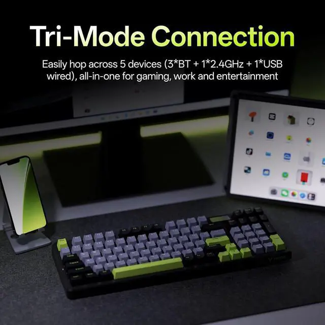 Tri-Mode ConnectionConnect using Bluetooth 5.0 (up to 3 devices), 2.4GHz or USB wired option, provides seamless switching between pc, laptop or mobile devices for gaming, work and entertainment.