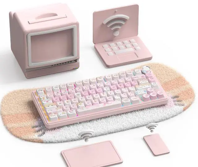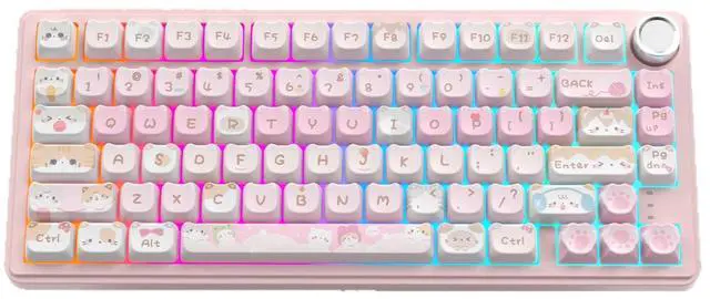 The Maoben M75 is a stylish and functional mechanical keyboard designed with a feminine aesthetic. Combining a 75% compact form factor, a tactile metal control knob, and vibrant RGB lighting, it delivers both visual charm and practical performance.