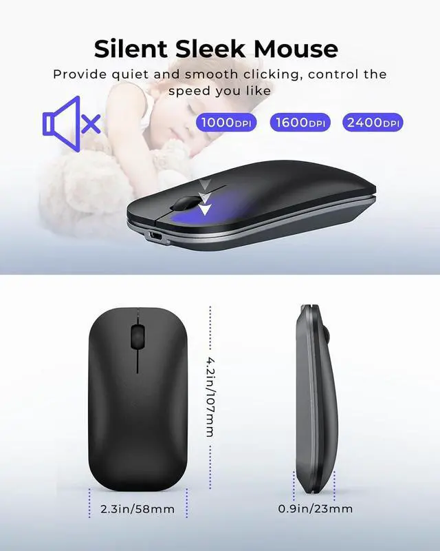 Silent & Precise Mouse: Noiseless clicks prevent distractions, while adjustable DPI (1000/1600/2400) ensures smooth control. Ideal for shared spaces, libraries, offices, or late-night use where quiet and accuracy matter