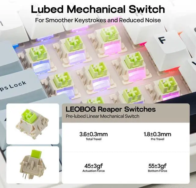 Precision-Engineered 1.2 mm PCB&Pre-Lubricated Mechanical SwitchesAt the heart of the F75 is a meticulously crafted 1.2 mm single-key slotted PCB. This precision engineering ensures that each keystroke is registered with accuracy and stability, providing a satisfying and reliable typing experience. The FF75 also features factory-lubricated mechanical switches that offer a seamless and smooth actuation. This pre-lubrication process ensures a fluid, consistent keystroke right from the start.