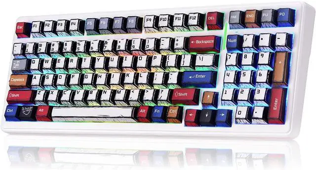 PBT Comic Keycaps and 8000mAh Ultra Long Battery Life: This Aula F99 Keyboards 99 keys 96% layout compact mechanical keyboard which is made from double shot comic PBT keycaps can save more desktop space while keep necessary arrow keys and number area for games and work, and this characters maintain the vibrance and saturation, clear and not fade maintain the vibrance and saturation, clear and not fade, and comic color is also currently a new trend worldwide.