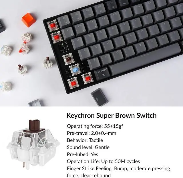 The Keychron Super Switch is built to last with a lifespan of 50 million clicks and provides great reliability and high performance for fast typing and competitive gaming. The K4 has enchanting white LED backlight with modern keycap legends to sync with your mood; available in static white or flashing light mode.