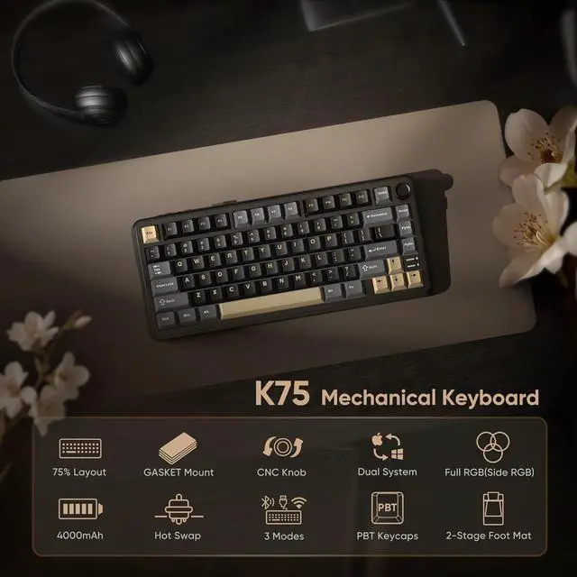 Programmable SoftwareProgrammable mechanical keyboard allows for deep customization of keyboard functions. Downloading the K75-US driver (only settable in 2.4G wireless or wired mode with Windows) enables comprehensive programmability, key mapping, macro definition and adjust key sensitivity, sleep time, debounce and backlight effects (including music rhythm backlight) to suit any workflow, gaming or life scenarios.