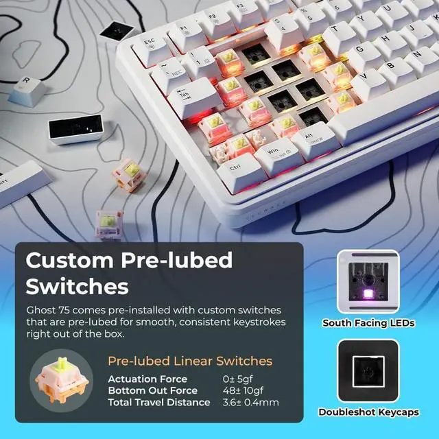 TYPING: Experience a refined, quiet typing feel with the Ghost 75s gasket-mounted structure and multi-layer sound dampening. This design absorbs vibration and reduces noise, delivering the smooth, creamy keystrokes enthusiasts loveperfect for gaming late at night or working in shared spaces.