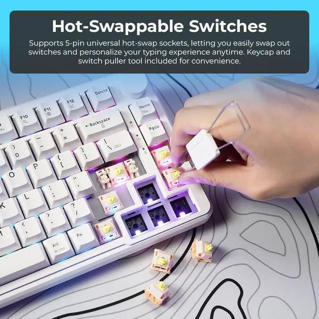 HOT-SWAPPABLE & SOUTH-FACING RGB: Build your dream custom keyboard easily with a 5-pin hot-swappable PCB that supports most mechanical switches. South-facing RGB LEDs ensure vibrant, interference-free lighting that shines brightly through the legends, even with Cherry-profile keycaps.