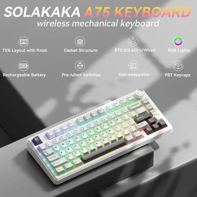 Superior Structure Creamy Keyboard: SOLAKAKA thocky keyboard features a gasket mount structure. This structure consists of a PCB single-key slotting process, IXPE shaft bottom pad, PET voice actor pad, silicone base mat, PO sound-absorbing cotton and PO base cotton. This can eliminate the cavity sounds and noise inside the gaming keyboard, delivering a creamy keystroke sound and a soft hand feel