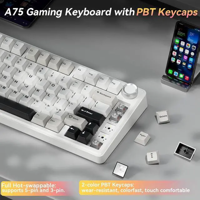 Full Hot Swappable Mechanical Keyboard: This mechanical keyboard supports 3-pin/5-pin full hot-swap functionality. It allows you to DIY your ideal keyboard without any soldering required. Even beginners can complete the DIY quickly. This mechanical gaming keyboard features pre-lubricated stabilizers and LEOBOG reaper switches, delivering precise and smooth keystrokes