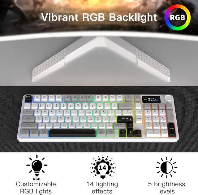 RGB Backlit Gaming Keyboard: Features with 14 preset lighting effects to enhance your gaming atmosphere. Personalize the brightness, color, and lighting effects to create an immersive experience.