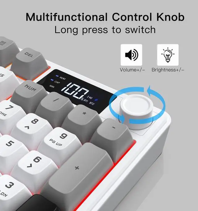 Multifunction Knob and Display: The knob allows you to adjust backlight brightness and volume. The LED display provides real-time monitoring of battery level, connection status, input status and system compatibility.
