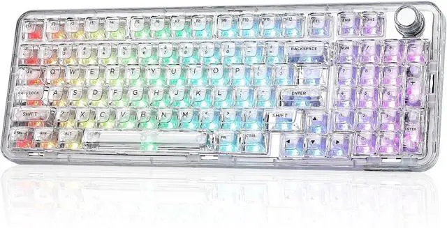 Crystal Clear Keyboard with Vibrant RGB: X98 transparent keyboard crafted from high-transparency PC material, the clear casing and shine-through keycaps maintain purity and clarity. Double-layer clear keycaps not only keep the crystal aesthetic appeal but also ensure anti-fading of keycaps characters. The RGB keyboard featuring with south-facing LEDs and 16.8 million colors, light up your gaming setups
