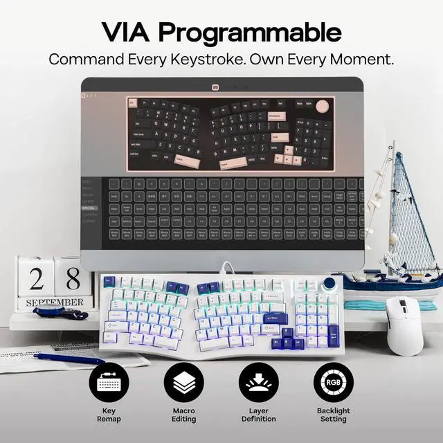 • VIA Programmable The Feker Alice98 programmable keyboard is compatible with VIA, offering you complete control over your keyboards functionality. With VIA support, you can easily remap keys, create custom macros, and set up complex key combinations tailored to your workflow or gaming needs. This high level of customization allows you to personalize every aspect of you