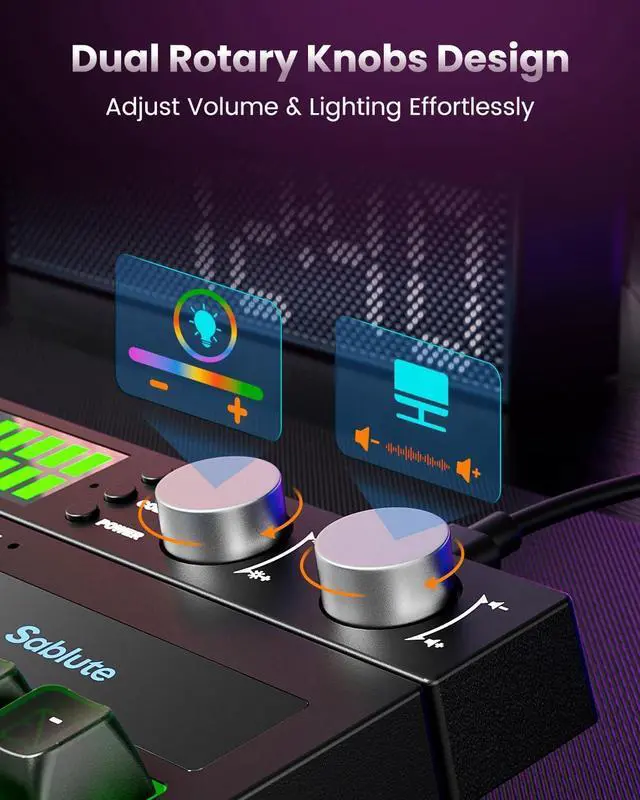 [Sound-Reactive RGB Light Show] This light up gaming keyboard features a built-in LED sound-display bar that syncs with game audio, music, and voice. With 8 vivid RGB modes, its the ultimate LED gaming keyboard for streamers and gamers seeking an immersive desk setup.