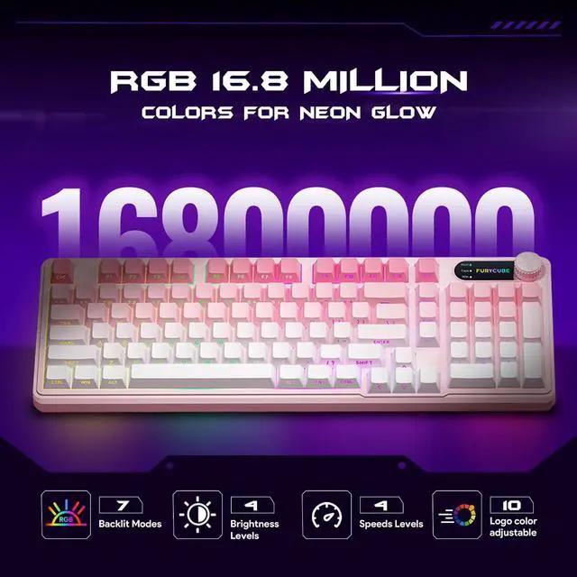 MILLION RGB BACKLIT: This keyboard is equipped with RGB color adjustment, 10 different logo color changes, 7 different RGB lighting modes and effects, 4 backlight brightness levels, adjustable breathing speed. It meets diverse needs from office work to gaming, and from simplicity to flashiness, adding personality and a sense of technology to your desktop.