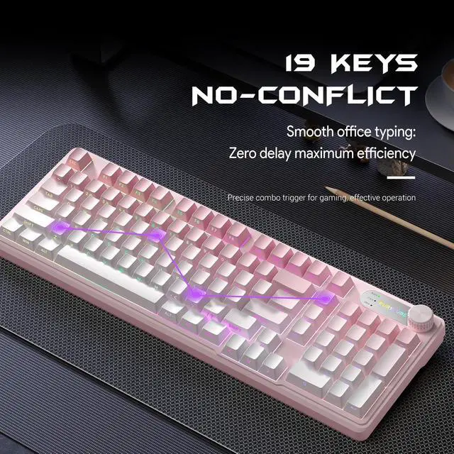 MULTIMEDIA AND ANTI-KEY CONFLICT: This gaming keyboard is equipped with a multifunctional knob for easy volume/backlight mode (supports 4 levels of adjustment). It also uses advanced matrix scanning technology to ensure that 19 keys can be pressed simultaneously without loss or mispress, perfectly meeting the demand for multiple key combinations in games. Additionally, it has 12 extra FN multimedia keys (a total of 114 keys). Whether for FPS shooting, MOBA team battles, or MMORPG skill combos, it can respond accurately to help you dominate the battlefield.