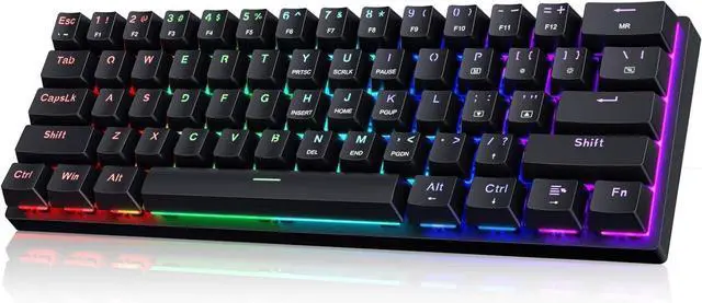 Keyboard: 61 Keys Compact DesignUltra-compact layout with 61 keys that free up your desktop, leaving more space for mouse movements. Especially, there is a long detachable Type-C cable on the right side of the keyboard, ensuring safe transport in your travel bag. For FPS gamers who are focused on speed & secure connection, this 60% keyboard is proper to pick. ( Simply Press Fn+Space key to switch to direction keys for efficient operates)