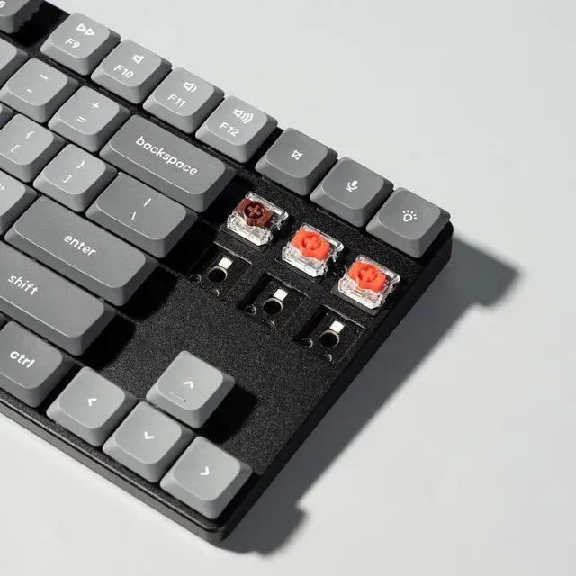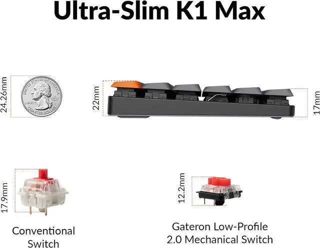 Hot-Swappable - You can easily hot-swap every low-profile Gateron mechanical switch in a few seconds to customize the typing experience without soldering. *The K1 Max is currently compatible with Gateron/Keychron low-profile mechanical switches only, as QMK does NOT support low-profile optical switches.