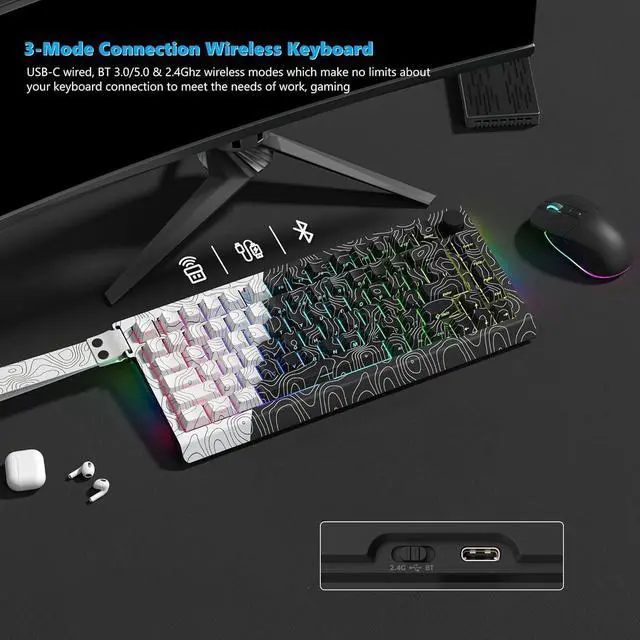 Strap: Q75 mechanical keyboard uses a fun design balanced in black and white, which perfectly integrates the topographic theme into the gaming keyboard. Carefully matched the Strap that matches the main picture of the keyboard. Popular and simple patterns, the lines are smooth, the patterns are clear and exquisite, and the compact 75% layout keyboard is perfect for intense gaming and comfortable typing.