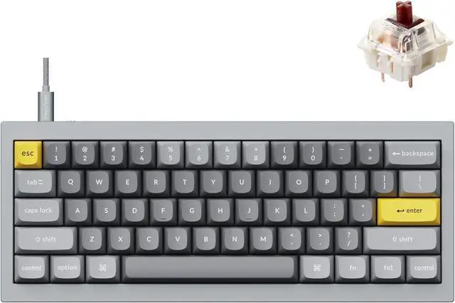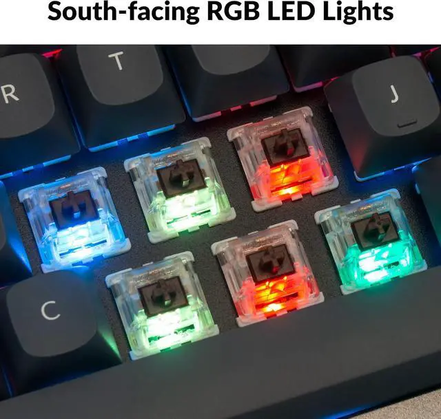 You can hot-swap the Keychron Q4 with almost all of the 3pin and 5pin MX style mechanical switches on the market (including Cherry, Gateron, Kailh, Panda, etc. ) without soldering required. while the pre-installed Gateron G Pro mechanical tactile brown switch providing unrivaled tactile responsiveness with up to 50 million keystroke lifespan. The PCB-mounted screw-in stabilizer for big keys such as space bar, shift, enter, and delete are designed for less wobbliness.