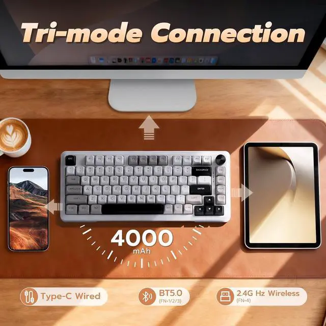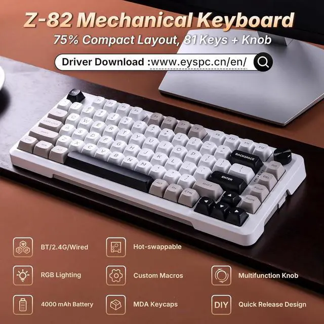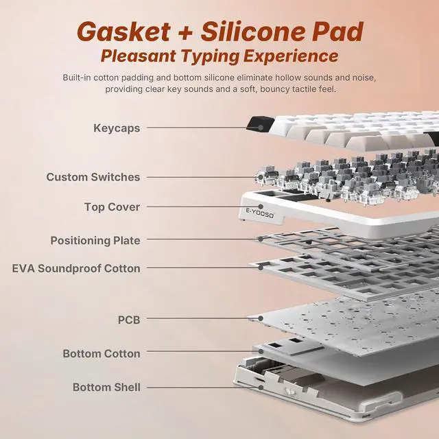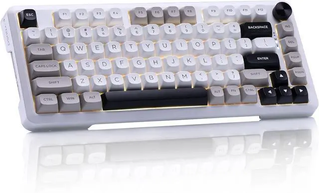 75% Compact Layout & Innovative Gasket Structure: The 81-key 75% compact layout saves desk space while retaining essential keys like the arrow keys, balancing efficiency and comfort. The innovative Gasket structure, combined with foam padding and silicone layers, reduces noise and offers a smooth, quiet keystroke experience. Equipped with Silverwood switches and hot-swappable key sockets, the keyboard provides rapid response and extremely low latency.