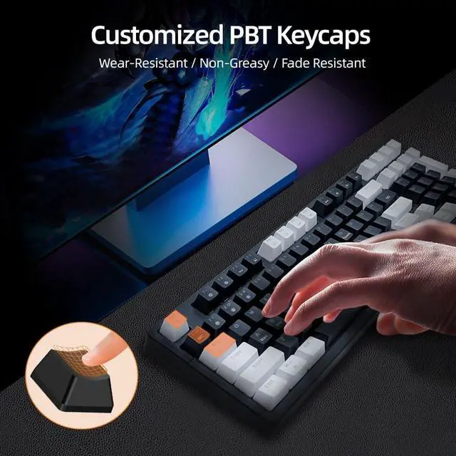 Hot-Swappable & Durable Construction: Hot-swappable switch design enables easy customization without the need for soldering. Built with a reinforced, sturdy frame and premium PBT keycaps for long-term durability and stable performance