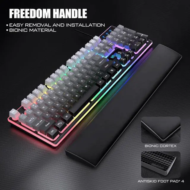 Perfect Ergonomic Computer Gaming ComboThe adjustable tripod keyboard makes your keys easier. The anti-slip material mouse that is more suitable for the hand can reduce your hand fatigue. Soft leather wrist rest made from smooth faux leather and memory foam for extra relaxation while gaming.