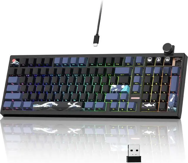 Space-Saver with Volume Control Designed with a space-saving 98% layout, this 98% compact layout keyboard with multimedia volume knob retains full functionalityincluding arrow keys and a numpadwhile reclaiming 10% of your desk space. Its modern minimalist aesthetic makes it an aesthetic thocky keyboard that complements any home, office, or gaming setup. The creamy acoustics enhance every keystroke, turning daily tasks into a delightful experience